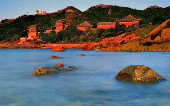 覺華島海蝕奇景極其壯觀,近乎獨一無二,基巖海岸在波浪作用下形成各具形態、怪石聳立的天然景觀,有金龜出海、招財金蟾、喝水河馬等惟妙惟肖的象型石,還有花崗浪雕、黛石海琢、過海石舫等鬼斧神工的天工巨作。
