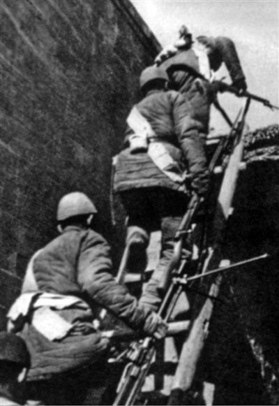 八路軍從地道轉(zhuǎn)向房頂打擊敵人。 |